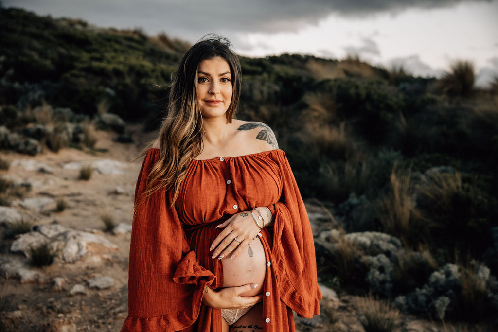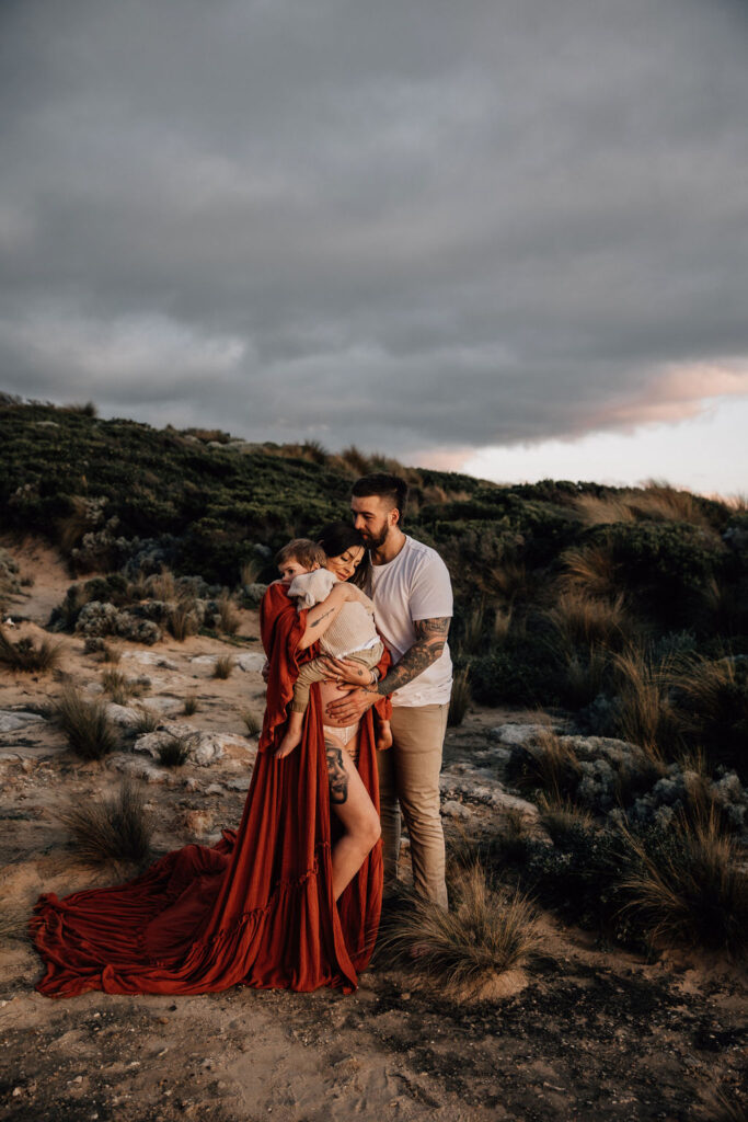 Dresses are complimentary to use as part of my session fee from my growing client wardrobe. I can also suggest some amazing maternity dress hire companies, one of which is even on the way to many of my photoshoot locations on the Mornington Peninsula so you can even collect on the way if post does not suit (plus they offer a discount code!) Your session will allow for at least 2 if not 3 dress changes – 1 of which I suggest should be a robe – so we can capture some of those beautiful bare belly shots.