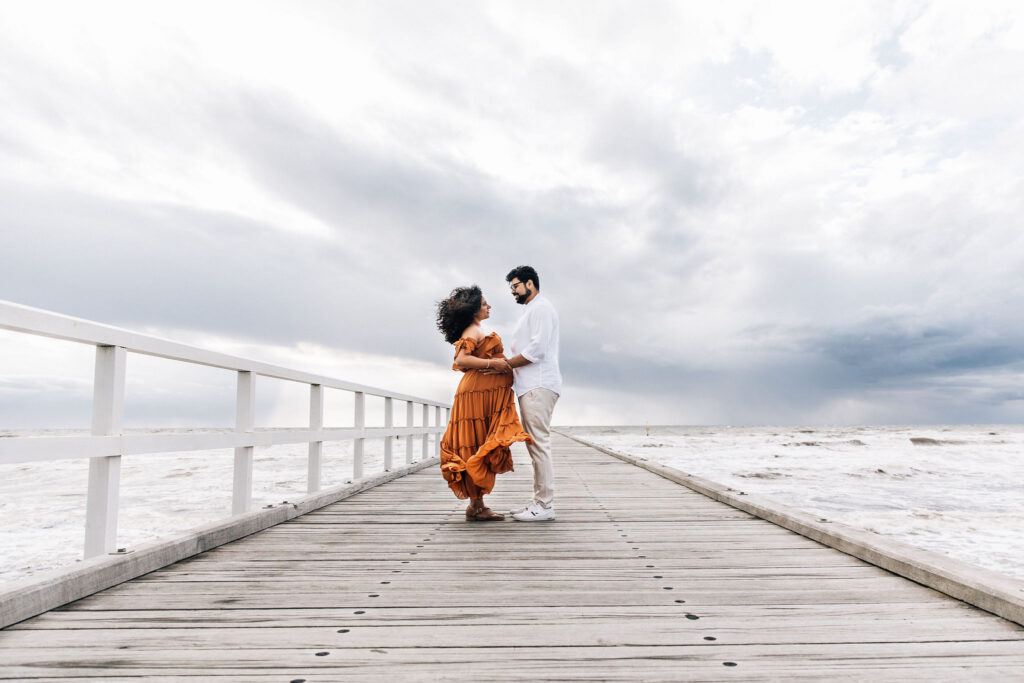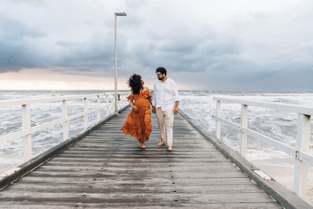 Its a common misconception (at least in my eyes) that sunny days produce the best conditions for your photography sessions. Truth be told, I love a stormy sky and this maternity session definitely didn’t fail to deliver. In all the honesty the weather on this particular day was pretty terrible, early in the day I’d advised that due to the always changing Melbourne weather that the session would need to be rescheduled. But this couple later contacted me and kindly asked that we at least try given their time constraints and their overwhelming want for capturing this special time before their little one arrived…I could see a break on the radar so off we went.
